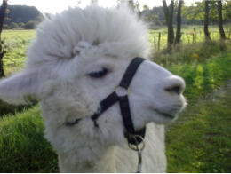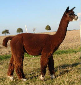 Ein sehr ausgeglichener, ruhiger Alpakawallach. Er ist ein waschechter Südamerikaner. Seine